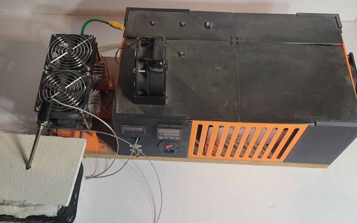 I built a heat treating oven that is capable of reaching 2000 degrees Fahrenheit using induction heating. Used for heat treating steel up to 4 inches in size. It uses a PID temperature controller to ensure a steady temperature within the heat chamber.